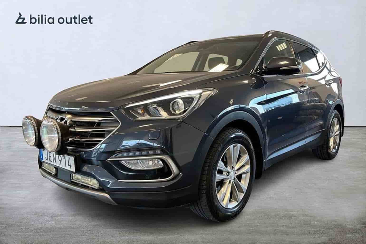 En välutrustad Hyundai Santa Fe av årsmodell 2016 med en mätarställning på 16 533 mil.